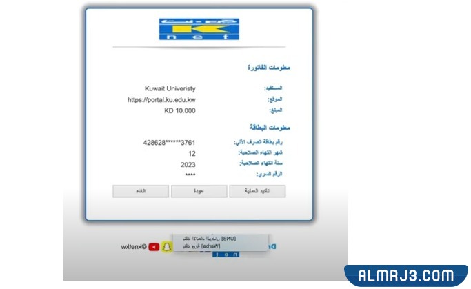 - تعبئة بيانات بطاقة الدفع كي نت في الحقول المخصصة والتي تتضمن: