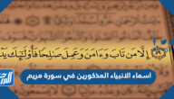 اسماء الانبياء المذكورين في سورة مريم بالترتيب