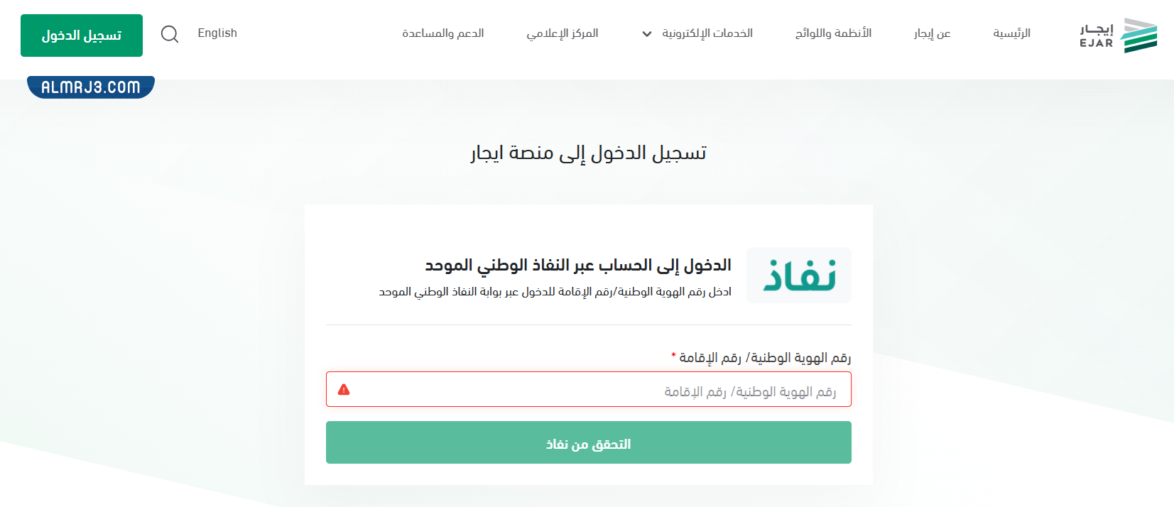 منصة إيجار تسجيل الدخول للأفراد 1447