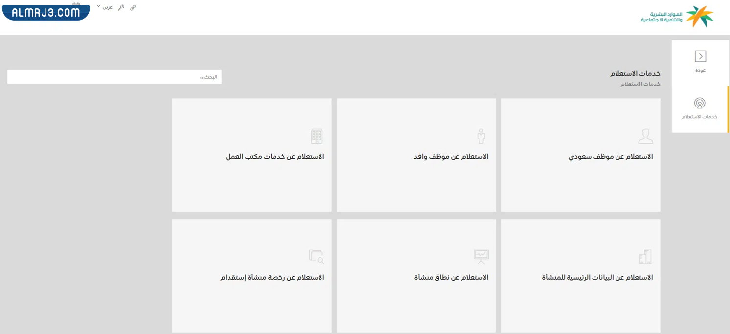 - بدء خدمة الاستعلام عن موظف وافد من الخدمات المتاحة.