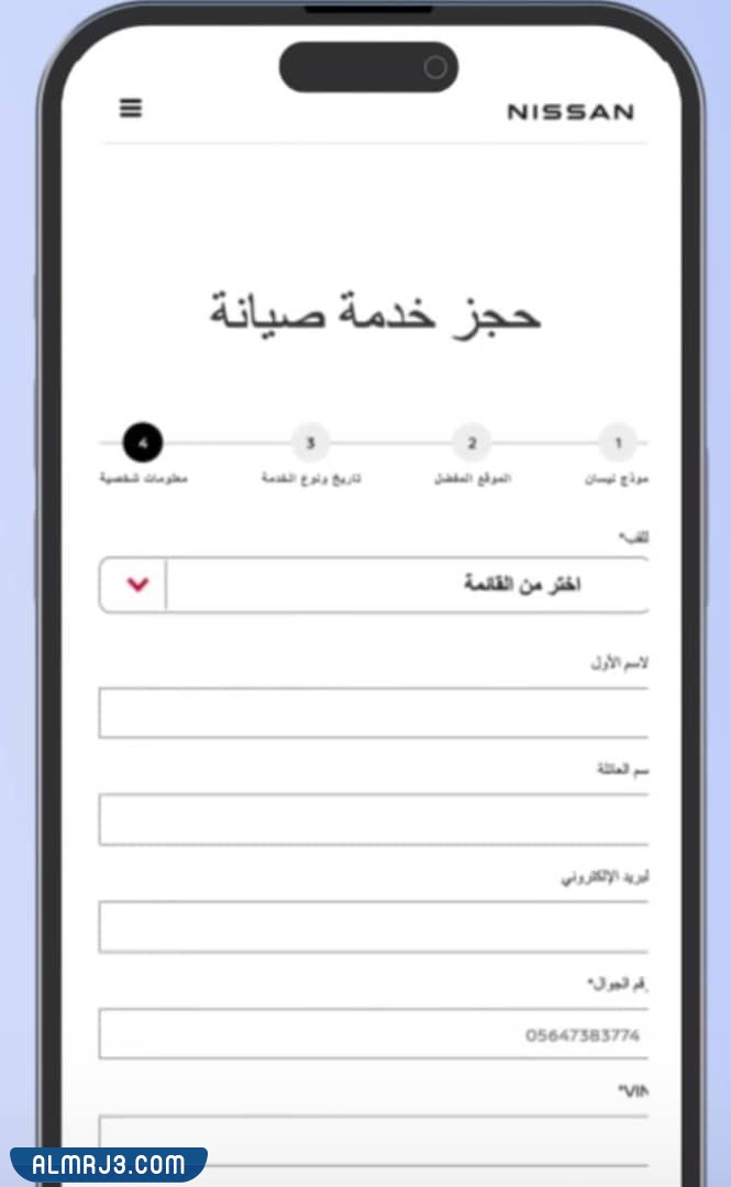 - الانتقال إلى خدمة حجز موعد صيانة نيسان “من هنا“.