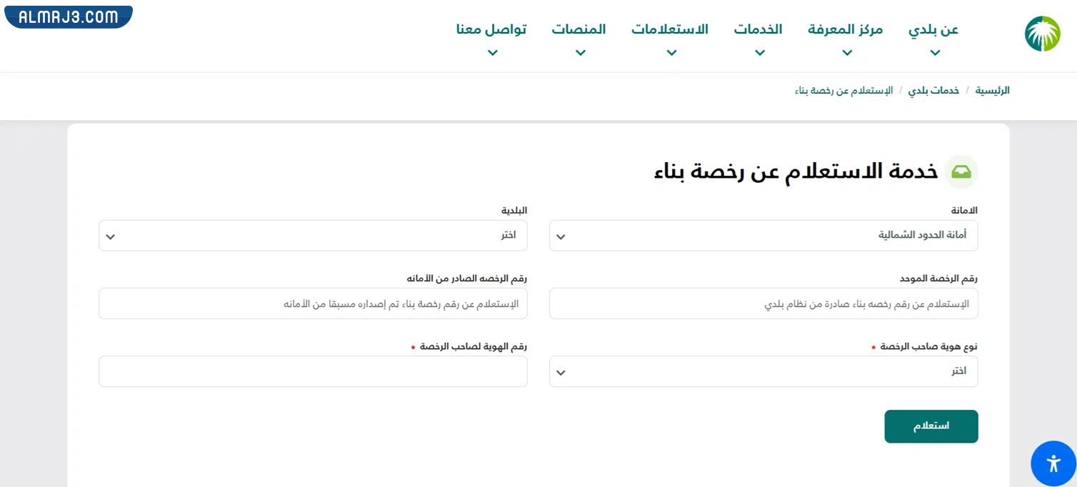 - الذهاب إلى خدمة الاستعلام عن رخصة بناء “من هنا“.