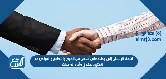 انتماء الإنسان إلى وطنه على أسس من القيم والأخلاق والمبادئ مع التمتع بالحقوق وأداء الواجبات