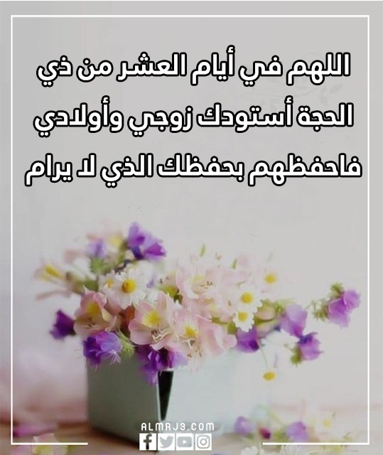 - اللّهم في أيام العشر من ذي الحجة أستودعك زوجي وأولادي فأحفظهم بحفظك الذي لا يرام، وعينك التي لا تنام.