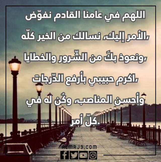 - اللهم في عامنا القادم نفوّض الأمر إليك، نسألك من الخير كلّه، ونعوذ بكَ من الشّرور والخطايا، أكرم حبيبي بأرفع الدّرجات، وأحسن المناصب، وكُن له في كلّ أمر.
