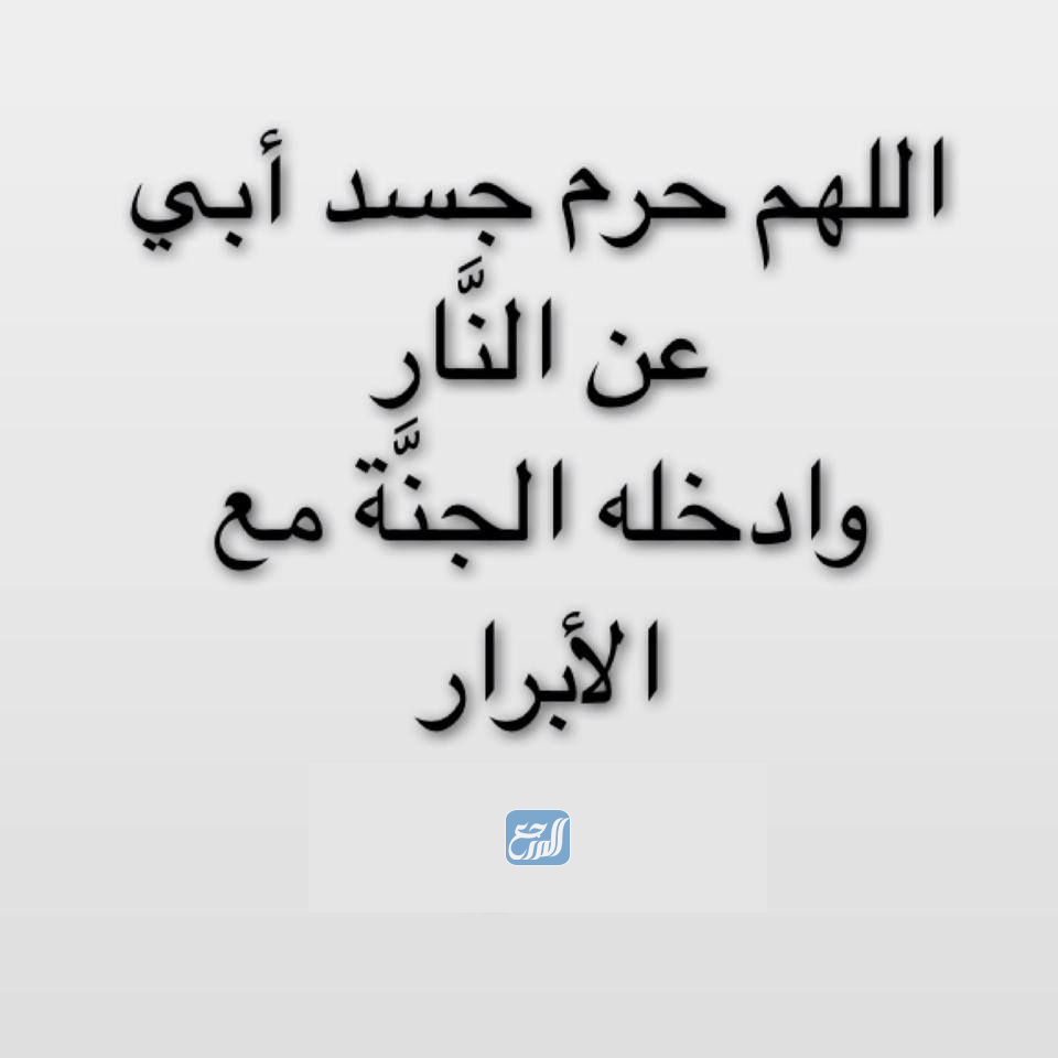 يا ربّ يا من قلت ادعوني أستجب لكم، يا رحمن الدّنيا ورحيم الآخرة، اللهمّ إنّ أبي قد فارقنا وفاضت روحه إليك، فاغفر له خطاياه، واعفٌ عن زلّاته، وارزقه سترًا في قبره وسترًا في الآخرة، اللهمّ ارحمه فوق الأرض وتحت الأرض ويوم العرض عليك، اللهمّ إنّي أدعوك وأرجوك أن تحشره مع الأولياء، وأن تجمعه يوم القيامة بنبيّك محمّدٍ في جنّات النّعيم، اللهمّ اجعله من الذين يدخلون الجنّة دون حساب، واجعله من الذين يعبرون الصّراط كالبرق، اللهمّ ارضَ عنه واغفر له وارحمه وتب عليه، إنّك أنت التّوّاب الرّحيم، والحمد لله ربّ العالمين.