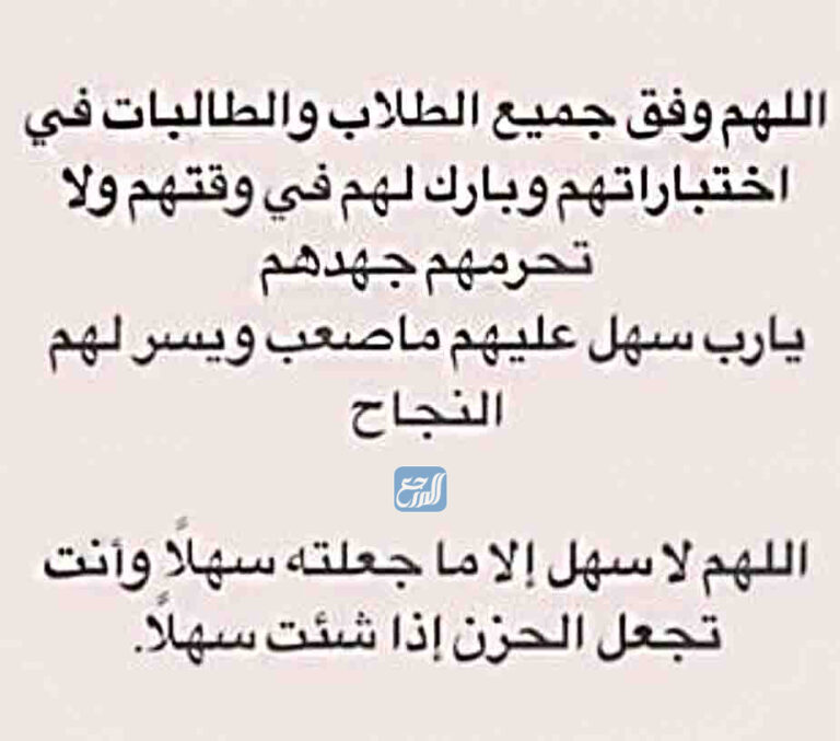 شاهد أيضًا: دعاء للطلاب بالتوفيق والنجاح ، أجمل أدعية التوفيق والنجاح للطلاب