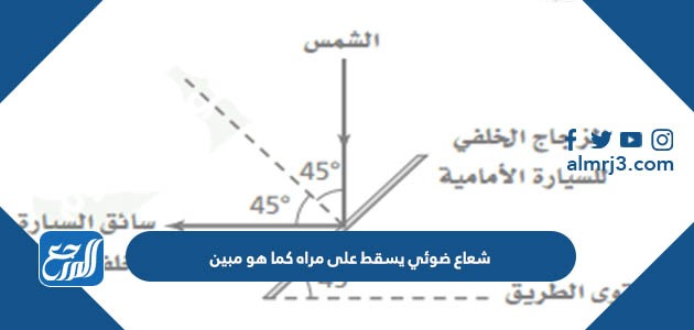 شعاع ضوئي يسقط على مراه كما هو مبين
