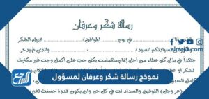 - 1 نموذج رسالة شكر وعرفان لمسؤول