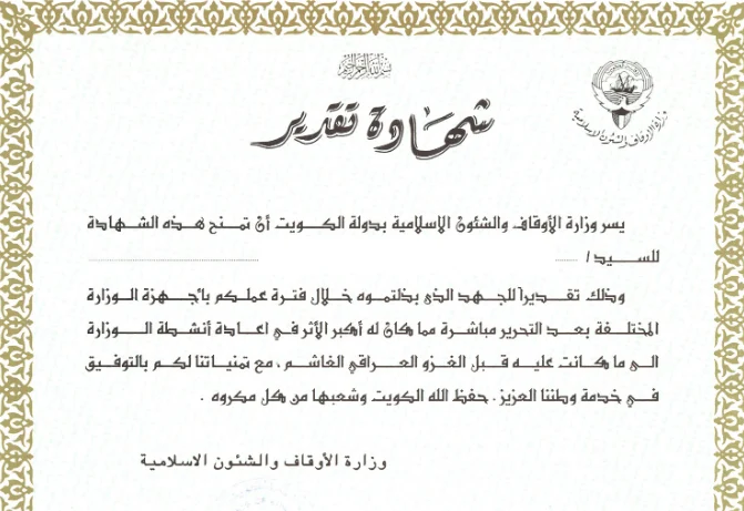 شاهد أيضًا: شهادات شكر وتقدير فارغة جاهزة للكتابة عليها