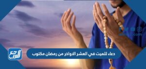 دعاء للمتوفي في العشر الاواخر “اللهم أسألك أن ترحم ميتنا فإنه عبدك ابن عبدك، خرج من هذه الدنيا وسعتها ومحبوبها، وترك أحبائه فيها، وانتقل إلى ظلمة القبر وما هو لاقيه، فارحمه يا رحمن يا رحيم”.