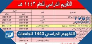 يحتوي الجدول الآتي على تفاصيل التقويم الدراسيّ للجامعات السعوديّة عام 1443هـ.[1]