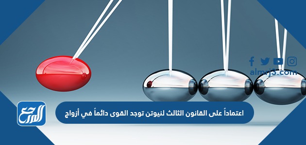 وبذلك نكون قد وصلنا إلى نهاية مقالنا بعد أن تعرفنا من خلاله على إجابة سؤال اعتمادا على القانون الثالث لنيوتن توجد القوى دائما في أزواج، كما تعرفنا أيضًا على نص قانون نيوتن الثالث وأمثلة عليه.