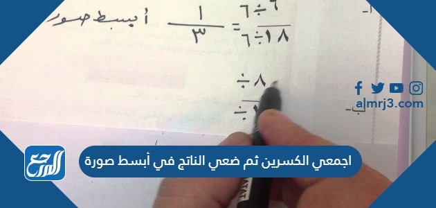 اجمعي الكسرين ثم ضعي الناتج في أبسط صورة، تعتبر العمليات الحسابية من أهم العلوم الرياضية، والتي يتم استخدامها كثيراً في حياتنا اليومية، وتعد الكسور من ضمن الأعداد التي يتم تطبيق عمليات الجمع والطرح والقسمة والضرب عليها، ومن خلال موقع المرجع سيتم التعريف بالكسر، وطرق كتابة الكسور والتعبير عنها، بالإضافة إلى جمع الكسرين وكتابة الناتج في أبسط صورة.