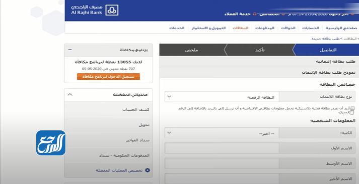 - اصدار بطـاقة الراجـحي مـسبقة الـدفع الرقمية اون لاين.