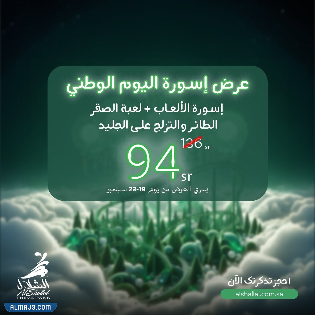 - عروض أسورة اليوم الوطني: أسورة الألعاب + لعبة الصقر والتزلج على الجليد بـ 94 ريال سعودي.