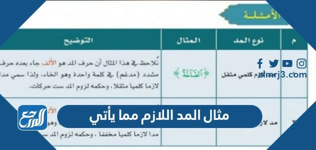 مثال المد اللازم مما يأتي سؤالٌ يتكرر بكثرة في الأسئلة الامتحانية والمناهج التعليمية، وهي تتعلق بأحد أنواع المدّ والذي يُعدّ أحد أحكام التجويد المهمة ويندرج تحت علوم القرآن الكريم، وإنّ الألفاظ والكلمات في اللغة العربية تتعدّد أحكامها ودلالاتها بحسب الأحرف التي تحتويها، فيمكن للكلمة أن تحوي مدًّا بأيّ نوعٍ منه، ويمكن أن توي أحد أحكام التّجويد الأخرى كأحكام النون الساكنة والتنوين، وأحكام الميم الساكنة، ولأهميّة الاطّلاع على أحكام التجويد سيُطلعنا موقع المرجع في هذا المقال على أمثلة عن أحد أنواع المدود وهو المد اللازم.
