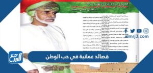 شعر وقصائد عمانية في حب الوطن مكتوبة وبالصور هي إحدى نوافذ الاحتفال المميّزة التي يُعبّر من خلالها الشارع العُماني عن محبّته لأرضه وأهله، وتحمل تلك القصائد مع حُروفها الكثير من المشاعر المميّزة، والأخلاق الوطنيّة الأنيقة التي تليق باسم عُمان وأهلها، وعبر موقع المرجع نقوم على تبيان طرح أجمل قصيدة في حب عمان بمناسبة العيد الوطني ضمن باقة من أجمل أبيات شعر في حب الوطن العُماني.