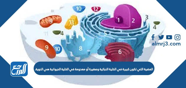 العضية التي تكون كبيرة في الخلية النباتية وصغيرة أو معدومة في الخلية الحيوانية هي النوية
