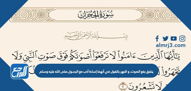 يتفق رفع الصوت، والجهر بالقول في أنهما إساءة أدب مع الرسول صلى الله عليه وسلم، ومع حسن التعامل معه، فقد كان رسول الله -صلى الله عليه وسلم- خاتم الأنبياء والمرسلين، ونبي الرحمة الذي أخرج الناس من الظلمات إلى النور، واستمر في دعوة الحق بكل قوة وعطاء، وقد فضله الله سبحانه وتعالى عن سائر الأنبياء والمرسلين، ولهذا ستتم الإجابة في موقع المرجع عن عنوان المقال الحالي؛ يتفق رفع الصوت، والجهر بالقول في أنهما إساءة أدب مع الرسول صلى الله عليه وسلم، ومن ثم سنتعرف على سورة الحجرات، وهل رفع الصوت فوق صوت النبي كفر؛ في هذا المقال.