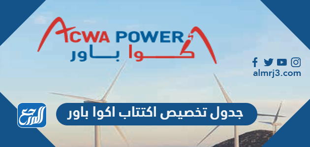 جدول تخصيص اكتتاب اكوا باور أعلنت عنه شركة أكوا باور يوم أمس بعد انتهاء لفترة الزمنية لاكتتاب الأفراد والشركات في الطرح العام الأولي للشركة المتخصصة بمجالات الطاقة النظيفة وتحلية المياه، وسيقدم موقع المرجع تغطية شاملة على جدول تخصص اكتتاب اكوا باور الإضافة إلى سعر الطرح العام ورد الفائض وموعد تداول أسهم أكوا باور.