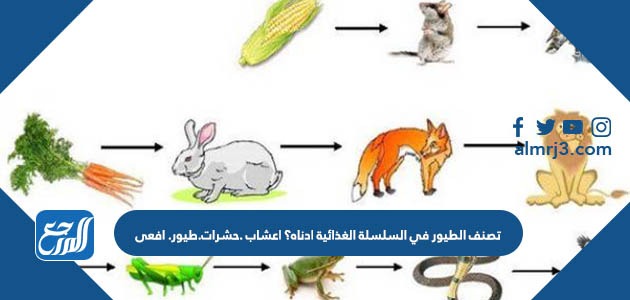 تصنف الطيور في السلسلة الغذائية ادناه؟ اعشاب .حشرات.طيور. افعى