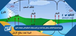 نتيجة لعملية التكثف ينتقل بخار الماء من المسطحات المائية إلى طبقات الجو.