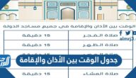 جدول الوقت بين الأذان والإقامة في كل فريضة