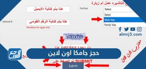 - إدخال البيانات المطلوبة مثل الموقع اسم الدولة والمدينة، والدولة المُراد السفر إليها، إدخال البيانات الشخصية، معلومات جواز السفر، معلومات الاتصال، رَقْم الثبوتية الوطنية، وأي معلومات أخرى مطلوبة ثم إدخال الكود المرئي والضغط على Submit:
