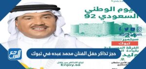 رابط حجز تذاكر حفل الفنان محمد عبده في تبوك اليوم الوطني 92، يوجد الكثير من فناني العرب الذين كان لهم دور مميز في المشاركة في احتفالات اليوم الوطني السعودي، ومن أهم هؤلاء الفنان محمد عبده الذي كان له بصمة مميزة على مر السنين في المشاركة بصوته الجميل إحياءً لهذه الذكرى السعيدة، من خلال موقع المرجع سوف نتعرف على اليوم الوطني السعودي 92، كما سنتعرف على موعد حفل الفنان محمد عبده، ونرفق رابط حجز تذاكر حفل محمد عبده بمناسبة اليوم الوطني السعودي 92.