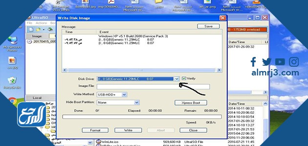 - اختيار موقع ذاكرة الفلاشة المراد حرق الويندوز عليها في شاشة Write Disk Image الظاهرة كما هو ظاهر في الصورة بالأسفل.