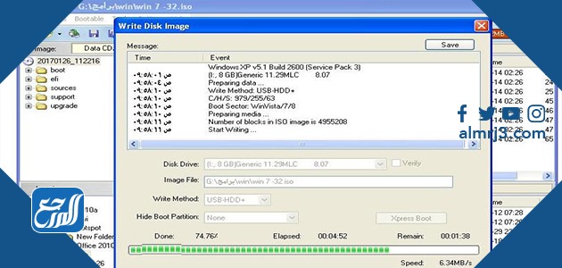 - الانتظار حتى انتهاء شريط عملية حرق نسخة الويندوز على ذاكرة الفلاشة المحددة، والذي سيأخذ وقت بناءً على مواصفات جهاز الكمبيوتر المستخدم.