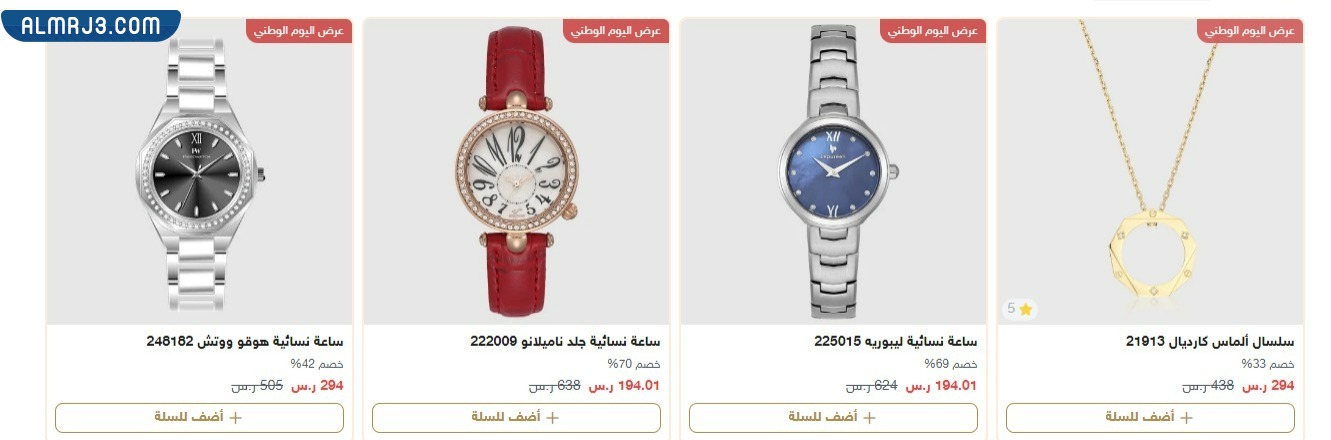 | ساعة نسائية وإسوارة إصدار خاص باليوم الوطني 94 | خصم 20% | 493.01 ر.س | 94 ر.س |