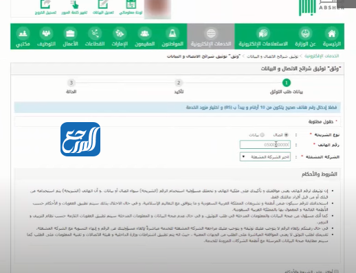 - ربط حساب أبشر برقم الهاتف القديم الفعّال على شبكة الاتصالات السعودية.