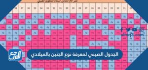 الجدول الصيني لمعرفة نوع الجنين بالميلادي