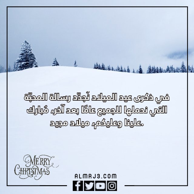 - بمناسبة عيد الميلاد المجيد من نهاية عام ميلادي، نُجدّد الحُب لجميع الأحبّة، من المقرّبين، ونُجدّد العهد على الوفاء والإخلاص للقلوب التي تُشاركنا الأمل والسّعادة، عام سعيد على الجميع.