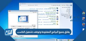 يغلق جميع البرامج المفتوحة وتوقف تشغيل الحاسب