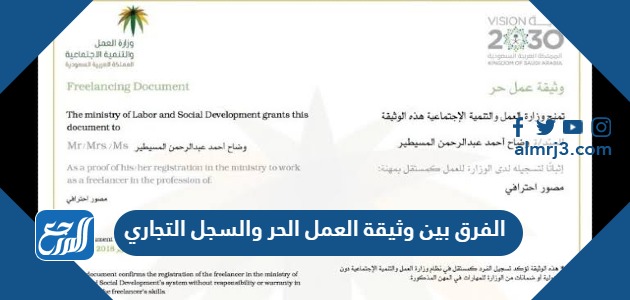الفرق بين وثيقة العمل الحر والسجل التجاري، فتحت المملكة العربية السعودية للموطنين والمقيمين لديها إمكانية العمل الإلكتروني، فأصدرت وَثيقة العَمل الحُر التي تتيح لأي شخص ممارسة أي مهنة مُختارة ضمن قائمة المهن المحددة من وزارة الموارد البشرية والتنمية الاجتماعية، وسنتعرف من خلال موقع المرجع على الفَرق بين وَثيقة العَمل الحُر والسِجل التِجاري، وهل تقوم وَثيقة العَمل الحُر مقام السِجل التِجاري، كما سنذكر شُروط الحصول على وَثيقة العَمل الحُر.
