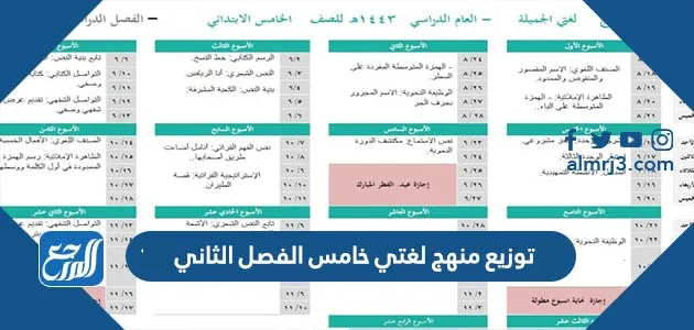 سيوضح الجدول التالي توزيع منهاج لغتي خامس ابتدائي الفصل الدراسي الثاني 1446: