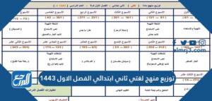 توزيع منهج لغتي ثاني ابتدائي الفصل الاول 1447