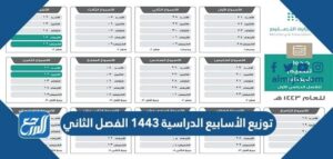 جدول توزيع الأسابيع الدراسية 1443 الفصل الثاني