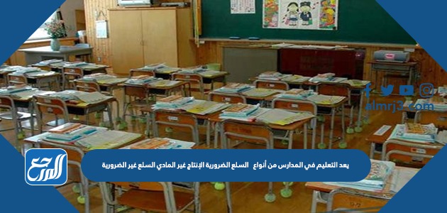 يعد التعليم في المدارس من أنواع ٠٠٠٠ السلع الضرورية الإنتاج غير المادي السلع غير الضرورية، ميّز الله الإنسان عن غيره من المخلوقات بنعمة العقل ولأجل هذه النعمة سجدت الملائكة لأبينا آدم عليه السّلام قبل أن يهبط إلى الأرض، ويقدّم موقعُ المرجع تعريف لعملية التعليم وأهميّتها على صعيد الفرد والمجتمع كما وسيتم التطرُّق إلى أنواع الإنتاج سواءً المادي أو الإنتاج الغير مادي وأمثلة على كلٍّ منهما.