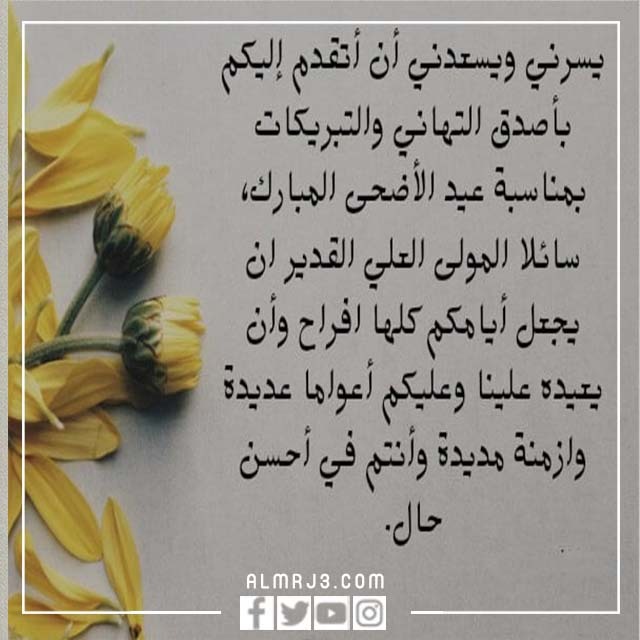 اقرأ أيضا: رسائل عيد الاضحى رسمية .. مسجات تهنئة للشركات والموظفين بالعيد