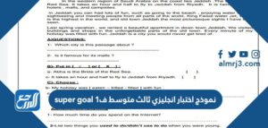 نموذج اختبار انجليزي ثالث متوسط ف1 super goal
