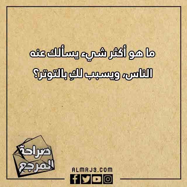 - ما هو أكثر شيء يسألك عنه الناس، ويسبب لكِ بالتوتر؟