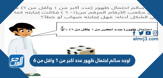 اوجد سالم احتمال ظهور عدد اكبر من ١ واقل من ٦