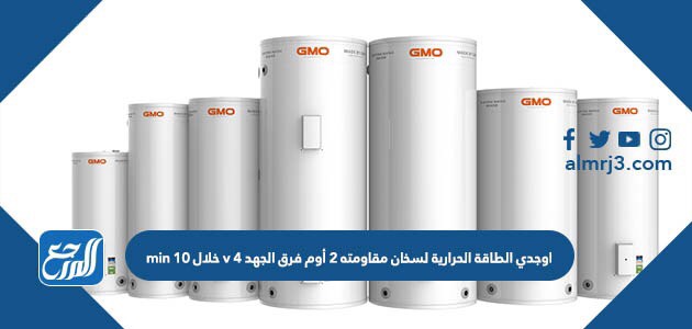 اوجدي الطاقة الحرارية لسخان مقاومته 2 أوم فرق الجهد 4 v خلال 10 min