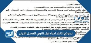 نموذج اختبار احياء اول ثانوي الفصل الاول