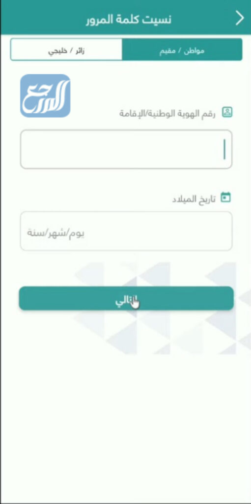 - إدخال رقم الهوية الوطنية/ رقم الإقامة.