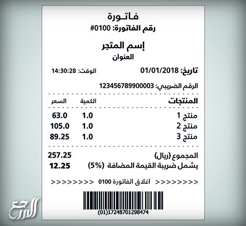 نموذج الفاتورة الضريبية المعتمدة في السعودية